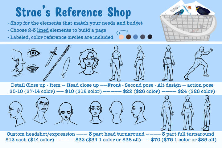 References: I will request reference of the desired character and pose. These can be a stickman drawing, pose refs from the internet or other source, an in-depth description of character appearance, etc. DO NOT send me an "AI" generated image as reference.